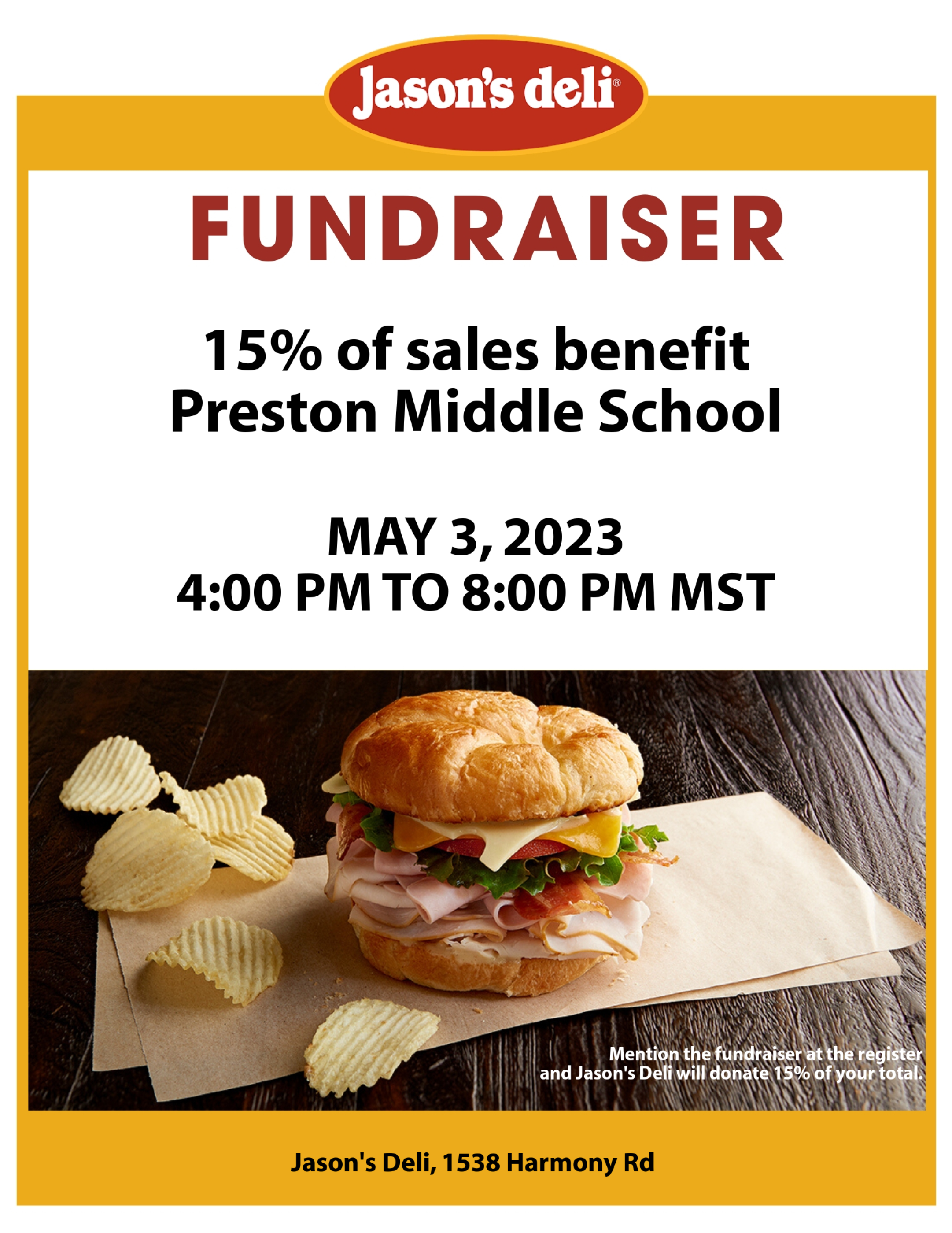 Mention this fundraiser at the register and Jason's Deli will donate 15% of your total to Preston!